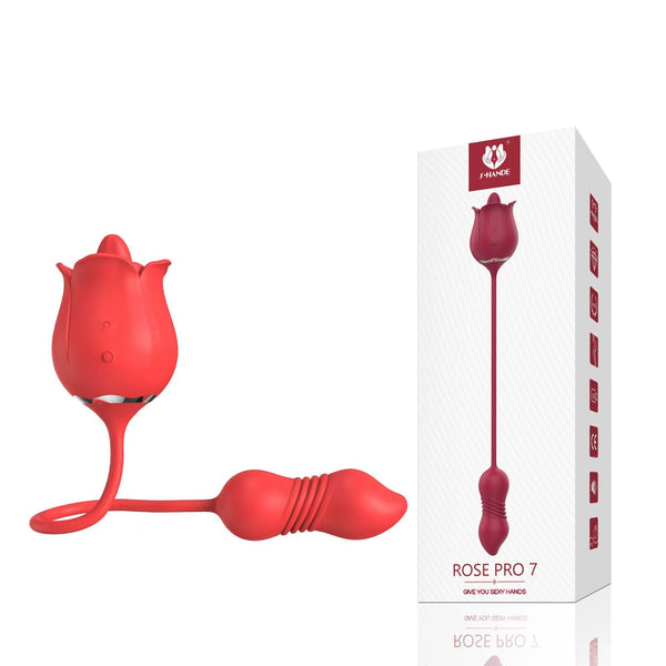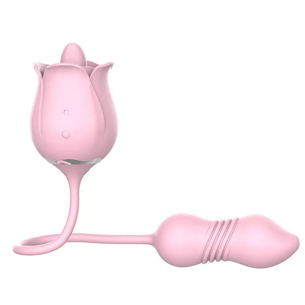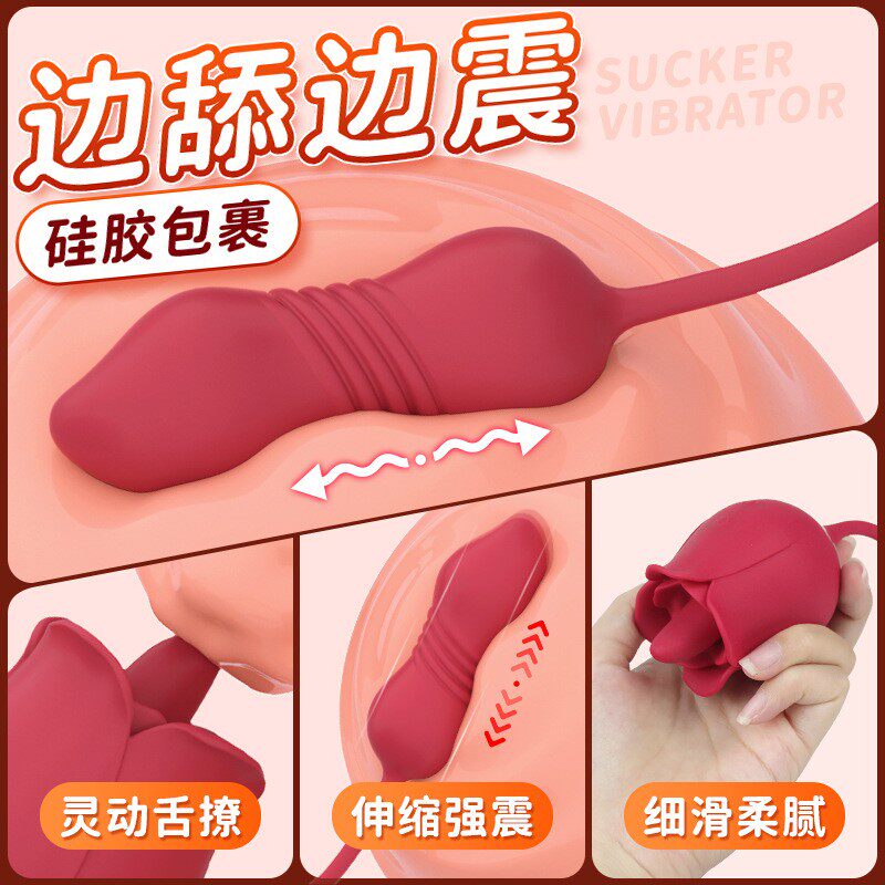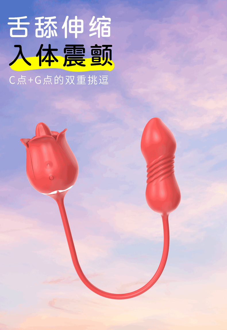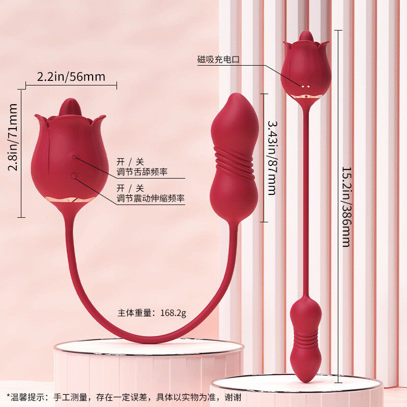 玫瑰花女用伸缩舌舔双点式震动按摩器磁吸充电